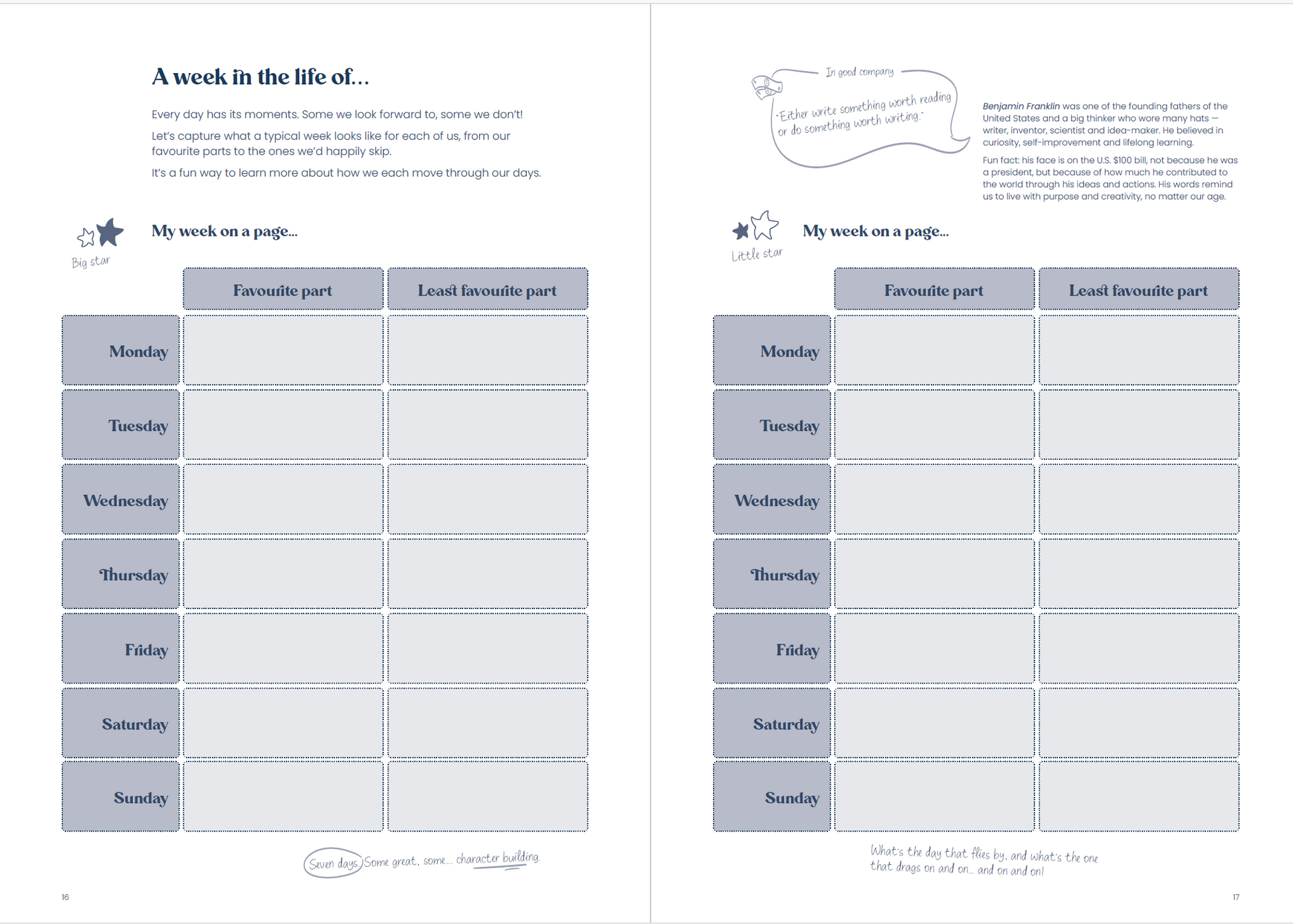 This journal is an invitation to slow down, be curious and capture the little things that make life — and each other — unforgettable.
